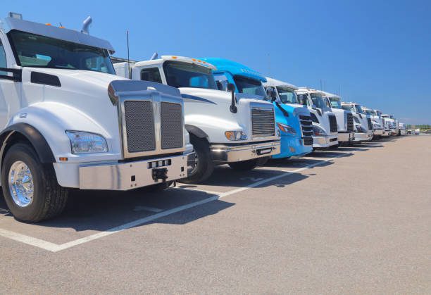 Serie of modern Trucks with clear sky and copy space